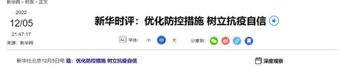 另外,新华社也发文了,其中提到,最困难的时期已经走过,现在奥密克戎病毒致病力在减弱,我们的应对能力在增强,这为持续优化完善防控举措奠定了基础,提供了条件。