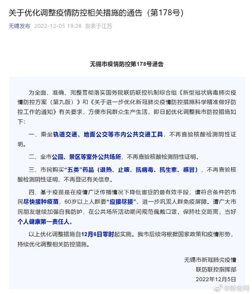 长春市新冠肺炎疫情防控指挥部办公室发布消息,不再开展常态化核酸检测,优化保留现有核酸检测点,实行“愿检尽检”,继续提供便民检测服务。出入办公场所、社区小区、商超及各类公共场所,乘坐地铁、公交、出租车等公共交通工具,不再查验核酸检测阴性证明。取消交通场站、高速卡口等场所“落地检”,返(来)长人员坚持报备管理。高风险行业核酸检测查验按规定执行。