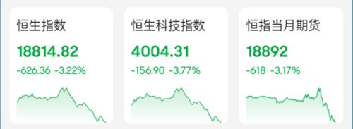 恒生指数大跌逾600点,跌破19000点大关,科技指数跌近4%,守4000点关口。