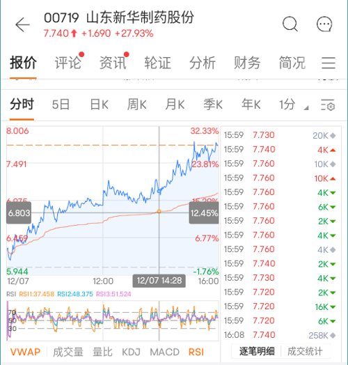 山东新华制药作为新冠口服药的合作生产方,今年4月就曾获资金爆炒,创下年内高点。这番表态立马让资金蜂拥,今日股价大涨近3成。