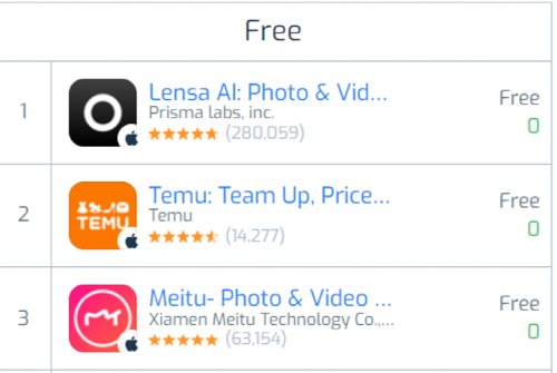 中国基金报记者查阅了iPhone最新的免费榜单,在美国、日本等发达地区,美图旗下的App Meitu均列前3的榜单。