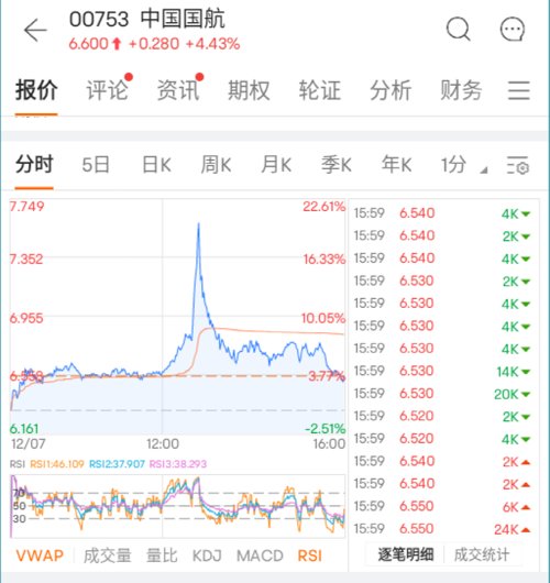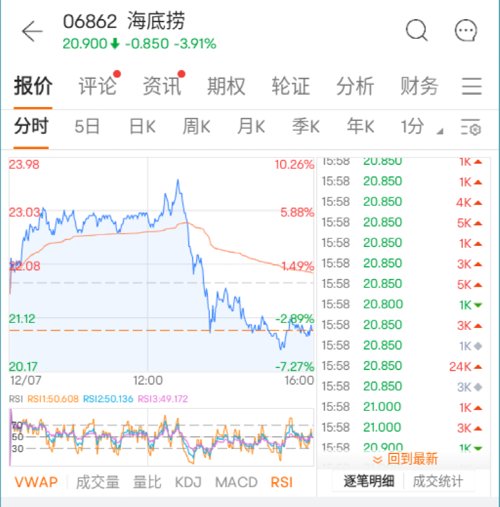 12月7日,港股冲高回落,尾盘出现快速跳水。