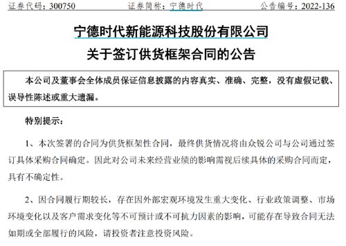宁德时代公告显示,12月6日,公司与众锐(北京)贸易服务有限公司(简称“众锐公司”)签订《关于产品采购及预付款的合同》。合同中约定,宁德时代将在2024年至2030年期间向众锐公司供应锂离子电池模组产品,众锐公司将采购的产品分别销售给Honda(本田)中国关联公司。