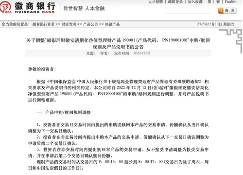 徽银理财也于12月2日公告称,自12月12日(含)起对“徽银理财徽安活期化净值型理财产品190001”的申购/赎回规则进行调整。
