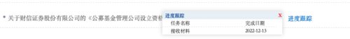 昨晚,证监会官网显示,财信证券递交《公募基金管理公司设立资格审批》,监管层已在12月13日接收材料。