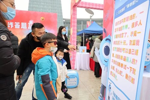 年底是金融诈骗的高峰期。为此,市民体验日现场设置了金融诈骗案例专区,市民戴上特殊的眼镜,即可看穿骗子话术下隐藏的真实意图,让骗局无所遁形。市民还可以投掷反诈骰子、参与答题游戏,检验反诈知识的掌握情况。有趣的互动体验,吸引周遭不少市民前来打卡。