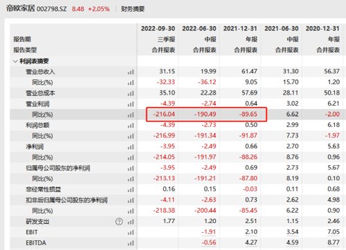 Wind数据显示,“帝欧转债”于2021年11月完成发行上市,发行规模为15亿元,期限6年,华西证券担任保荐机构及主承销商。然而自2021年底以来,帝欧家居营业利润节节下滑,2021年营业利润仅为0.64亿元,下滑89.65%;2022年前三季度营业利润-4.39亿元,同比下滑246.04%。