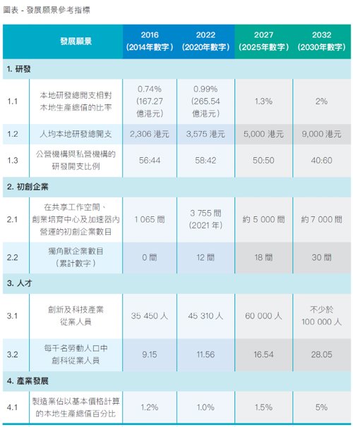 《蓝图》制定了5年和10年的发展目标:到2027 年,香港的整体创科氛围将进一步提升,生态日趋蓬勃。香港国际创新科技中心建设工作初见成效,渐见规模;到2032 年,香港的整体创科氛围将更为炽热,创科生态蓬勃,生机盎然。香港国际创新科技中心建设工作进入新阶段,基本建成具影响力的国际创新科技中心,为国家进入创新型国家行列提供重要支撑。