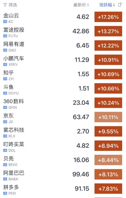 中概股大涨