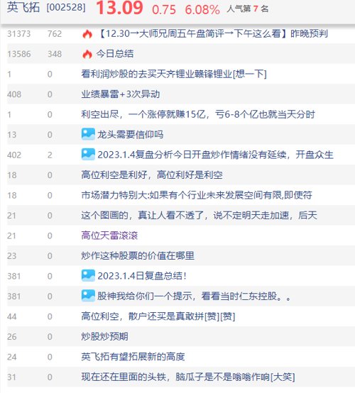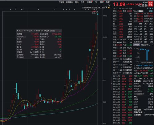 自2022年12月1日至2023年1月3日的23个交易日中,英飞拓共取得了13个涨停板,累计涨幅达151.84%。