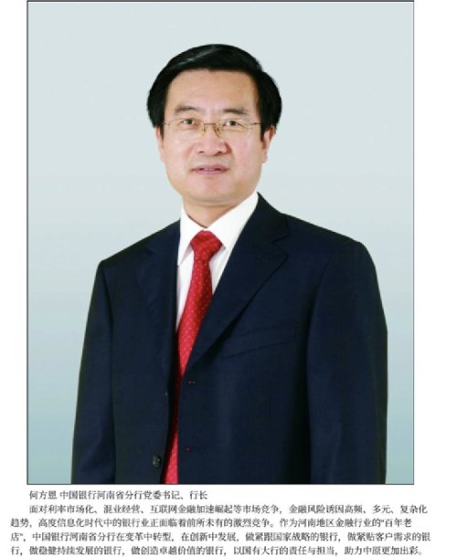 简历显示,何方恩早年长期在中国银行河北分行工作,曾任行长助理、副行长,后跨省调任中国银行河南分行副行长、行长、党委书记,还曾是河南省政协委员。此外,何方恩之前多次被地方媒体评为年度金融领军人物。