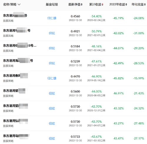 百亿私募东方港湾近年来同样业绩表现不佳,2022年公司整体亏损超25%,近两年业绩回撤甚至超过了30%。其中,东方港湾旗下有些产品的亏损甚至达到40%、50%,净值腰斩、跌到了0.5元附近。