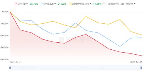 值得注意的是,这两年颇受市场关注的新晋百亿私募冲积资产,2021年以较高的收益率拿下年度私募业绩冠军,2022年却遭遇了滑铁卢,旗下产品业绩亏损超35%。