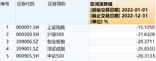在市场走势波动较大的2022年,上证指数跌了15.13%,沪深300跌了21.63%,创业板指跌幅更是达到29.37%。
