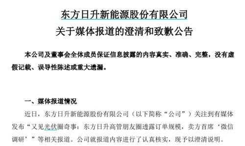 东方日升予以火速回应,在1月12日早间披露澄清公告,称庄英宏为公司中层管理人员,其发布的相关言论均系其个人行为,不代表公司立场。