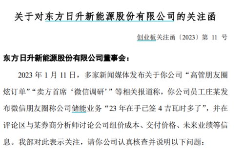 深交所在关注函中要求东方日升核实说明2023年储能业务在手订单情况、公司组件成本、交付价格等信息是否真实、准确,说明公司相关业务的具体开展情况以及存在的不确定性,并结合公司储能业务开展情况等各项影响因,分析并重点提示相关风险。