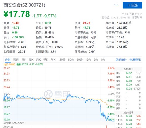 多只高位人气股尾盘跳水,全聚德、徐家汇、西安旅游、西安饮食触及跌停,人人乐、安奈儿等均大幅走低。