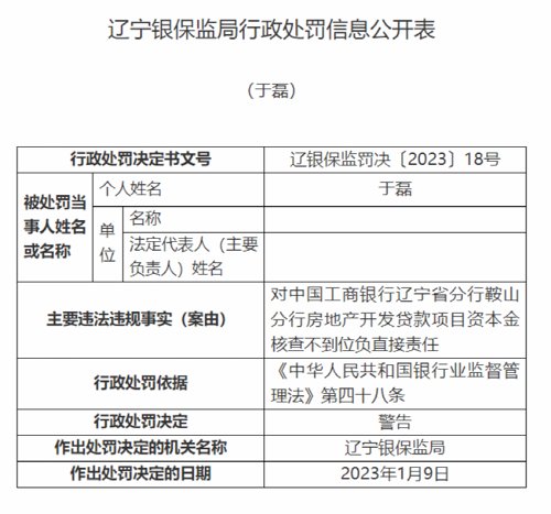 1月16日,辽宁银保监局连开18张罚单,对个人住房贷款管理不审慎、房地产开发贷款项目资本金审查不到位、以及对公经营性贷款流入房地产领域的问题给予重拳整顿!