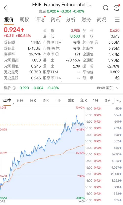 “新能源车三巨头”蔚来涨近9%,小鹏汽车涨超7%,理想汽车涨近7%。此外,法拉第未来大涨超50%。