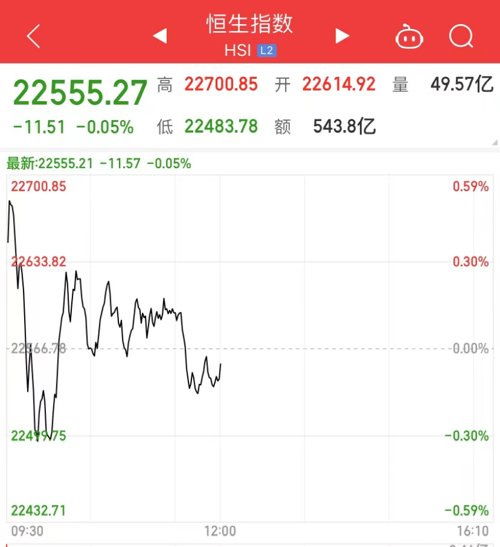 今日上午,港股整体窄幅震荡,上午收盘,恒生指数微跌0.05%,恒生科技指数涨0.22%。