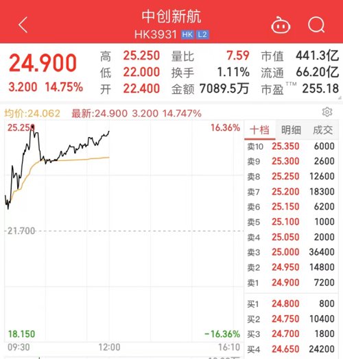 港股锂电巨头中创新航,高开3.23%后股价快速拉升,一度涨超16%,上午收盘涨14.75%,市值高达440亿港元。