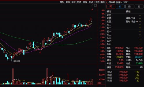除了中创新航之外,重磅股票微博、商汤也涨超10%。上午微博大涨10.68%,市值高达456亿港元。股价创去年6月以来新高。