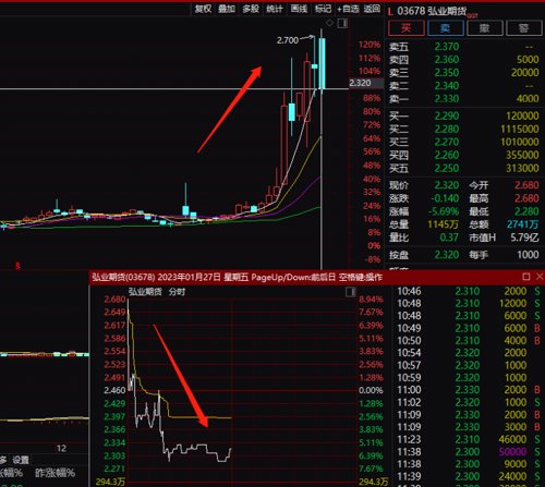 而近期股价持续躁动翻倍的期货股,弘业期货在高位震荡后,今天上午迎来跳水,上午高开近9%后快速跳水,暴跌5.69%。