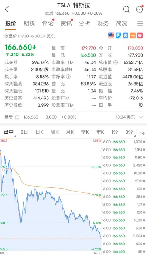龙头特斯拉收跌超6%,市值一夜大跌超355亿美元(近2400亿元人民币)。