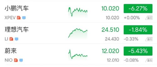 新能源车股全线向下。特斯拉跌超6%,市值一夜大跌超355亿美元(近2400亿元人民币)。中概新能源车三巨头“蔚小理”跟跌。