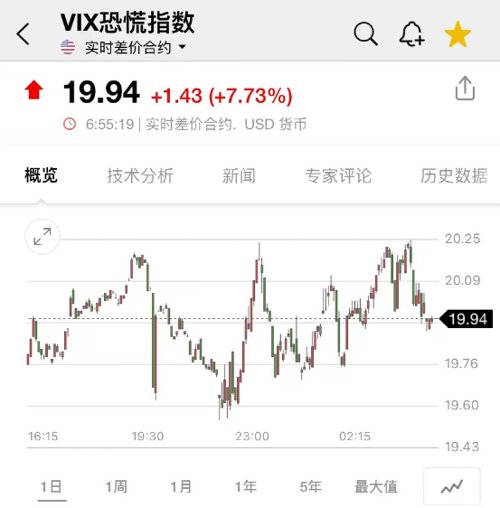 恐慌指数VIX涨7.73%。