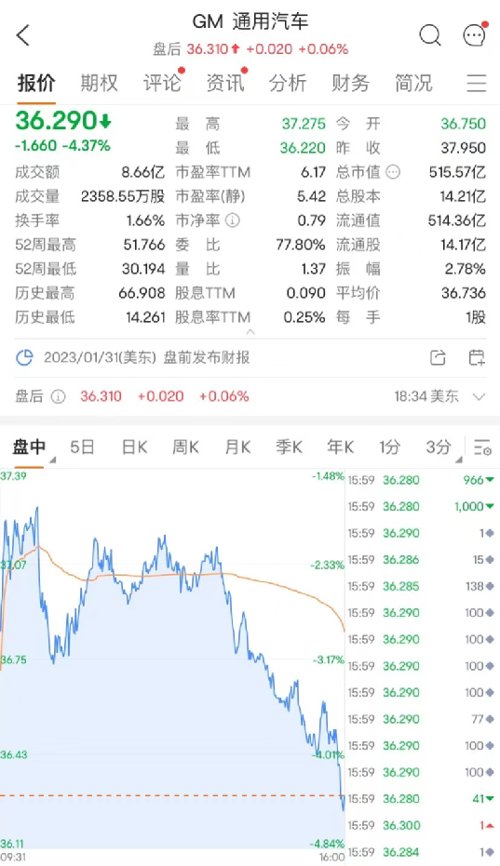 受特斯拉降价抢占市场影响,另一传统能源车巨头通用汽车也大跌。