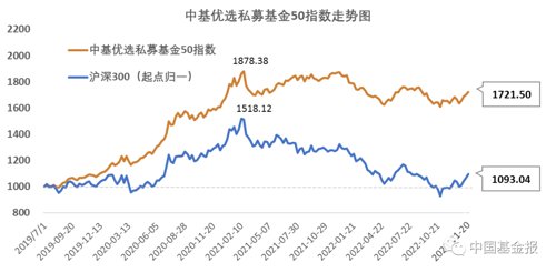 中基私募50指数在2023年1月20日当周收于1721.50点,较1月13日当周上涨1.19%。