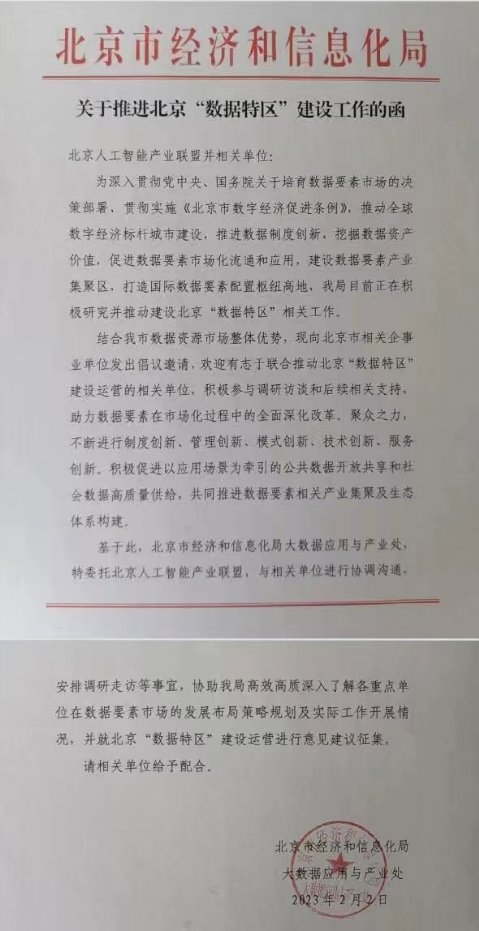 这份由北京市经济和信息化局发布的函件称,正在积极研究并推动建设北京“数据特区”相关工作。