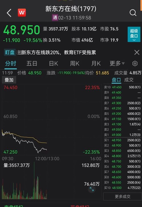 受高管减持冲击,新东方在线盘中跌幅超20%。