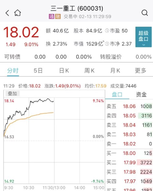1月企业新增贷款超预期,大基建板块获资金抄底,工程机械板块强势拉升。截至目前,三一重工放量大涨超9%,股价创逾半年新高。
