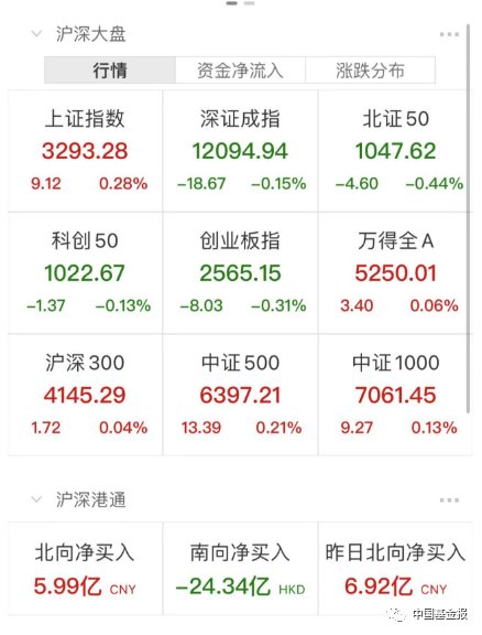 两市共2254只个股上涨,2587只个股下跌。北向资金净买入6亿元。