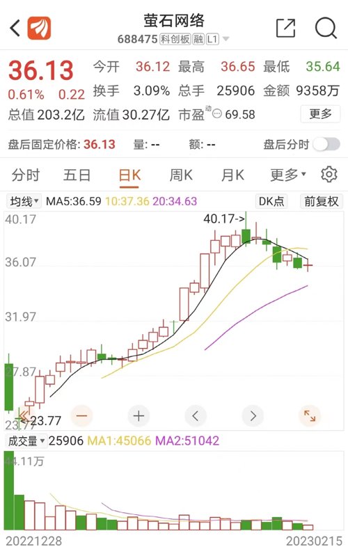 萤石网络上市当天股价破发,但在次日最低跌至23.77元之后,其股价开始持续上涨,并在春节后最高涨至40.17元,阶段最高涨幅达69%。