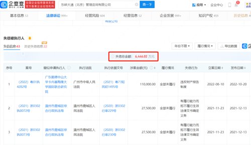 值得关注的是,ofo小黄车关联公司东峡大通(北京)管理咨询有限公司目前被执行金额已超2817万元,失信被执行金额达6446万元。