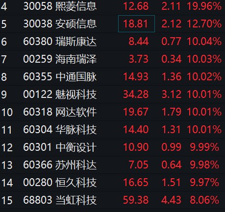 类似的,大信创概念还有多只个股大涨,网达软件、苏州科达纷纷涨停,英飞拓、数字政通、金桥信息等涨幅居前。