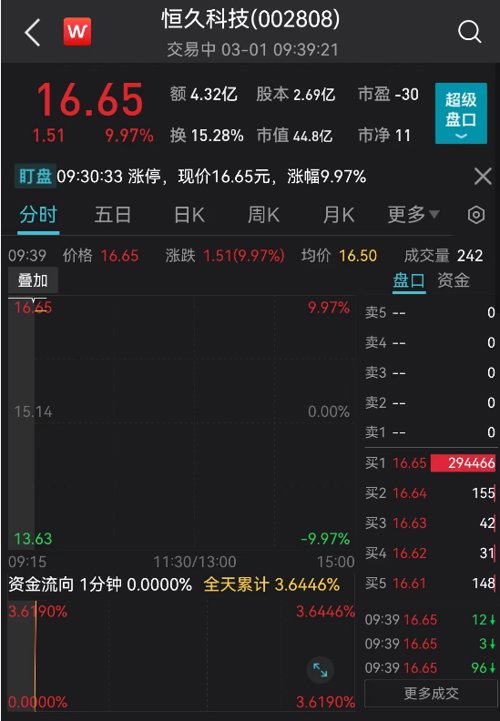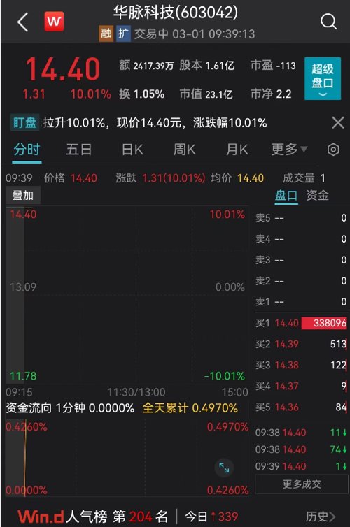 3月1日上午,近期火热的时空大数据概念威力继续,华脉科技、恒久科技连续涨停,成功实现两连板。