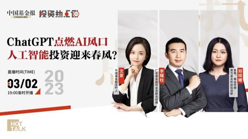 近期火热的ChatGPT话题带动了AI概念股的持续上涨,成为资本市场追捧的热点。市场风向切换频繁,投资者如何应对热点不断变化,如何进行资产配置及捕捉投资机遇?热门风口解读,锁定中国基金报《投资热点说》栏目,行业大咖为您指点迷津!