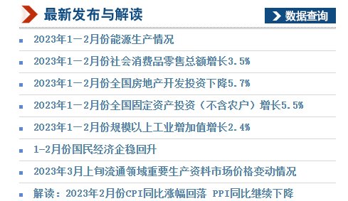 国家统计局指出,1-2月份,伴随着疫情防控较快平稳转段,经济循环加快畅通,生产需求明显改善,经济运行企稳回升。下阶段,要坚持稳字当头、稳中求进,完整、准确、全面贯彻新发展理念,加快构建新发展格局,着力推动高质量发展,加快政策落实落地,大力提振市场信心,推动经济运行整体好转,努力实现质的有效提升和量的合理增长。1-2月份,全国规模以上工业增加值同比增长2.4%,比2022年12月份加快1.1个百分点;两年平均增长4.9%。分三大门类看,采矿业增加值同比增长4.7%,制造业增长2.1%,电力、热力、燃气及水生产和供应业增长2.4%。分经济类型看,国有控股企业增加值增长2.7%;股份制企业增长4.3%,外商及港澳台商投资企业下降5.2%;私营企业增长2.0%。分产品看,太阳能电池、新能源汽车产量分别增长40.8%、16.3%。从环比看,2月份规模以上工业增加值比上月增长0.12%。2月份,制造业采购经理指数为52.6%,比上月上升2.5个百分点;企业生产经营活动预期指数为57.5%,上升1.9个百分点。1-2月份,全国服务业生产指数同比增长5.5%,2022年12月份为下降0.8%;两年平均增长4.8%。其中,信息传输、软件和信息技术服务业,金融业生产指数同比分别增长9.3%、7.6%;住宿和餐饮业,交通运输、仓储和邮政业,批发和零售业生产指数分别增长11.6%、4.2%、3.0%。2月份,服务业商务活动指数为55.6%,比上月上升1.6个百分点。其中,道路运输、航空运输、邮政、住宿、租赁及商务服务等行业商务活动指数位于60.0%以上高位景气区间。从市场预期看,服务业业务活动预期指数为64.8%,比上月上升0.5个百分点。? 市场销售由降转增,基本生活类和升级类消费增长较快1-2月份,社会消费品零售总额77067亿元,同比增长3.5%,2022年12月份为下降1.8%;两年平均增长5.1%。按经营单位所在地分,城镇消费品零售额66796亿元,同比增长3.4%;乡村消费品零售额10271亿元,增长4.5%。按消费类型分,商品零售68638亿元,增长2.9%;餐饮收入8429亿元,增长9.2%。基本生活类商品销售较快增长,限额以上单位粮油食品类、服装鞋帽针纺织品类商品零售额分别增长9.0%、5.4%;部分升级类商品销售加快,限额以上单位金银珠宝类、化妆品类商品零售额分别增长5.9%、3.8%。全国网上零售额20544亿元,增长6.2%。其中,实物商品网上零售额17476亿元,增长5.3%,占社会消费品零售总额的比重为22.7%。从环比看,2月份社会消费品零售总额比上月下降0.02%。1-2月份,全国固定资产投资(不含农户)53577亿元,同比增长5.5%,比2022年全年加快0.4个百分点;两年平均增长8.8%。分领域看,基础设施投资同比增长9.0%,制造业投资增长8.1%,房地产开发投资下降5.7%。全国商品房销售面积15133万平方米,下降3.6%;商品房销售额15449亿元,下降0.1%。分产业看,第一产业投资增长1.5%,第二产业投资增长10.1%,第三产业投资增长3.8%。民间投资增长0.8%。高技术产业投资增长15.1%,其中高技术制造业和高技术服务业投资分别增长16.2%、12.3%。高技术制造业中,医疗仪器设备及仪器仪表制造业、电子及通信设备制造业投资分别增长21.3%、20.5%;高技术服务业中,科技成果转化服务业、研发设计服务业投资分别增长65.1%、16.9%。社会领域投资增长8.1%,其中卫生、教育投资分别增长18.8%、4.8%。从环比看,2月份固定资产投资(不含农户)比上月增长0.72%。1-2月份,货物进出口总额61768亿元,同比下降0.8%。其中,出口34936亿元,增长0.9%;进口26833亿元,下降2.9%。进出口相抵,贸易顺差8103亿元。一般贸易进出口增长1.2%,占进出口总额的比重为64.9%,比上年同期提高1.3个百分点。民营企业进出口增长5.3%,占进出口总额的比重为51.2%,比上年同期提高3.0个百分点。机电产品出口增长0.4%,占出口总额的比重为58.0%。1-2月份,全国城镇调查失业率平均值为5.6%。2月份,全国城镇调查失业率为5.6%,比上月上升0.1个百分点。本地户籍劳动力调查失业率为5.4%;外来户籍劳动力调查失业率为5.9%,其中外来农业户籍劳动力调查失业率为6.0%。16-24岁、25-59岁劳动力调查失业率分别为18.1%、4.8%。25-59岁劳动力中,初中及以下学历、高中学历、大专学历、本科及以上学历劳动力调查失业率分别为5.7%、5.2%、4.1%、3.0%。31个大城市城镇调查失业率为5.7%。全国企业就业人员周平均工作时间为47.9小时。1-2月份,全国居民消费价格(CPI)同比上涨1.5%。分类别看,食品烟酒价格同比上涨3.4%,衣着价格上涨0.6%,居住价格下降0.1%,生活用品及服务价格上涨1.5%,交通通信价格上涨1.0%,教育文化娱乐价格上涨1.8%,医疗保健价格上涨0.9%,其他用品及服务价格上涨2.9%。在食品烟酒价格中,鲜菜价格上涨1.3%,粮食价格上涨2.7%,猪肉价格上涨7.9%,鲜果价格上涨10.8%。扣除食品和能源价格后的核心CPI同比上涨0.8%。分月看,1月份全国居民消费价格同比上涨2.1%,环比上涨0.8%;2月份同比上涨1.0%,环比下降0.5%。1-2月份,全国工业生产者出厂价格同比下降1.1%。分月看,1月份同比下降0.8%,环比下降0.4%;2月份同比下降1.4%,环比持平。1-2月份,工业生产者购进价格同比下降0.2%。凌晨突发!“俄战机致美无人机坠毁”,美国紧急召见,俄大使表态!国际油价一度重挫超5%!市场恐慌情绪降温,银行股暴力反弹!
