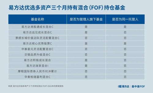 以易方达优选多资产三个月持有混合(FOF)A为例,该基金2022年四季度报告显示,报告期末其持仓基金如下: