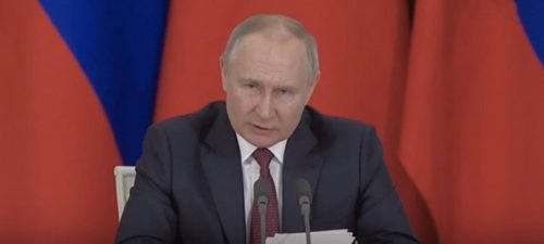 当地时间21日,普京对英国计划向乌克兰运送包含贫铀弹在内的坦克弹药表示谴责 视频截图