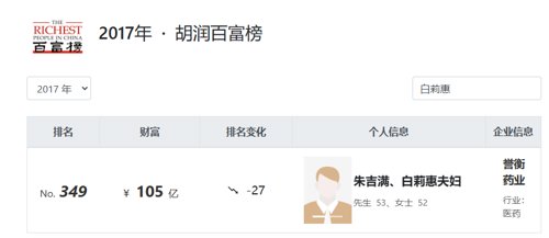 2018年,朱吉满与白莉惠自胡润百富榜上消失。2019年年报披露后,誉衡药业终于爆雷:当年归母净利润为-26.62亿元,此后业绩持续不振。2021年10月,誉衡药业曾被爆出行贿丑闻。誉衡制药的鹿瓜多肽注射液因存在商业贿赂行为,被浙江省药械采购中心在浙江省医药价格和招采失信等级中评为“严重”。