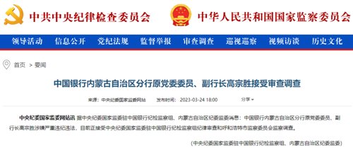 据中央纪委国家监委驻中国银行纪检监察组、内蒙古自治区纪委监委消息:中国银行内蒙古自治区分行原党委委员、副行长高宗胜涉嫌严重违纪违法,目前正接受中央纪委国家监委驻中国银行纪检监察组纪律审查和呼和浩特市监察委员会监察调查。