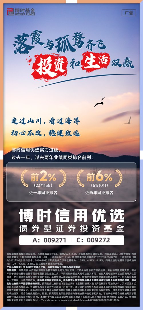 博时信用优选债券型证券投资基金(A类:009271;C类:009272)成立于2020年5月22日,定位互联网短债基金,主要投资方向为短久期信用债,组合整体久期控制在0.5年,2022年5月正式更换基金经理为于渤洋。