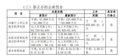 业绩修正主要原因为:对部分销售合同的收入确认计量标准进行再次分析,重新确认部分业务收入;对各类存货的可变现净值进行审慎分析和评估,对预期可能发生资产减值损失的资产补充计提部分减值准备。