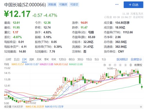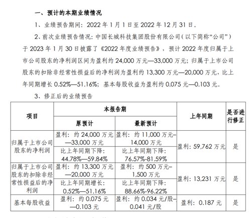 1、中国长城:下修业绩预告 2022年净利预降76.57%-81.59%
