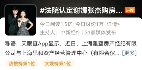一度沸沸扬扬的张杰谢娜买房跳单一事有了最新进展!法院判定谢娜张杰不存在跳单。